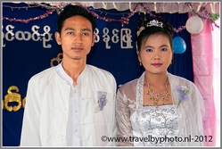 8 uur vertrek uit het hotel. We komen onderweg een trouwerij tegen. Even stoppen. We worden onthaald alsof we zelf bruid en bruidegom zijn. Heel hartelijk, heel bijzonder. Lekker kneuterig, plastic stoeltjes en tafeltjes en een kopje met heet water en een zakje Nescafé erbij. En cake natuurlijk. We worden aan de familie voorgesteld. De bruid is in het wit, met ook een flink witgemaakt gezicht. De bruidegom is ook in het wit. We maken wat foto's en beloven ze te e mailen.